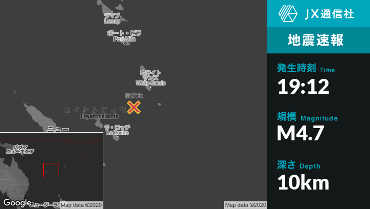 | 震源地 | バヌアツのIsangelから南西91kmの地点 |