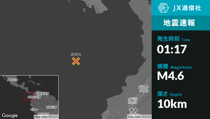5月06日 01:17頃、エクアドルのPropiciaから北西435kmの地点でM4.6の地震がありました。