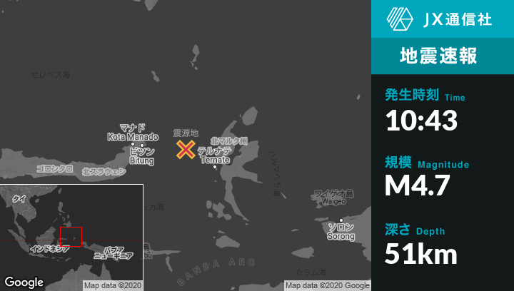 | 震源地 | インドネシアのKota Ternateから北西122kmの地点 |