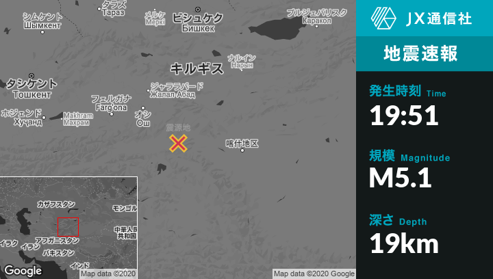 5月06日 19:51頃、キルギスタンのSary-Tashから東59kmの地点でM5.1の地震がありました。