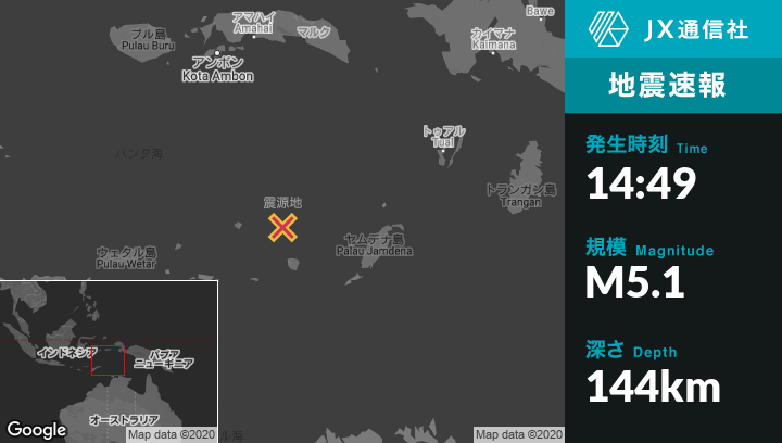 | 震源地 | インドネシアのSaumlakiから西北西223kmの地点 |