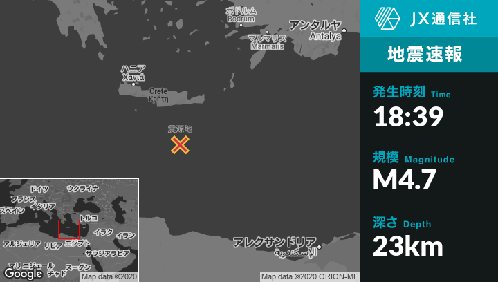 | 震源地 | ギリシャのIerapetraから南南西110kmの地点 |