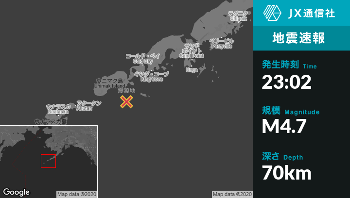 | 震源地 | アラスカのFalse Passから南59kmの地点 |