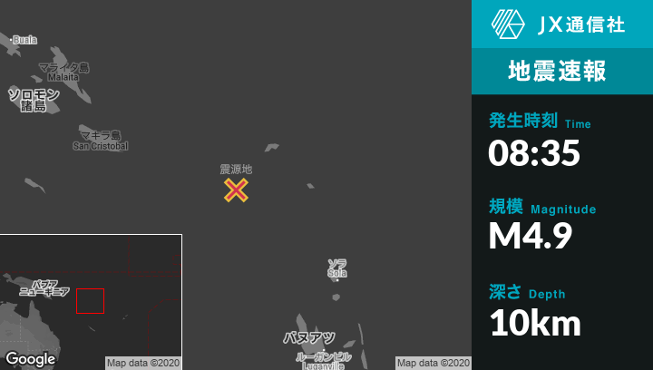 5月10日 08:35頃、ソロモン諸島のLataから南西130kmの地点でM4.9の地震がありました。