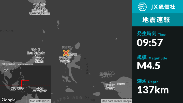 | 震源地 | インドネシアのTobeloから西62kmの地点 |