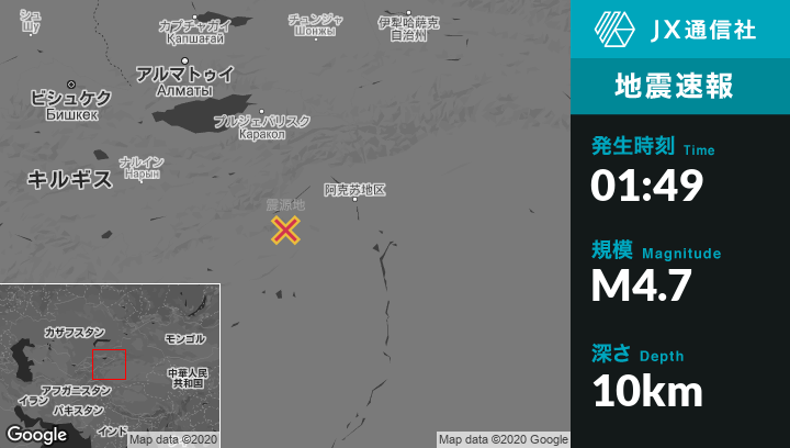 | 震源地 | 中国のAksuから西南西123kmの地点 |