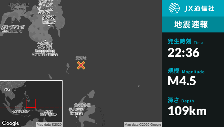| 震源地 | フィリピンのPondaguitanから南東266kmの地点 |