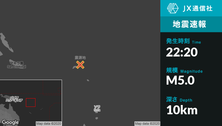 | 震源地 | ソロモン諸島のLataから東北東62kmの地点 |