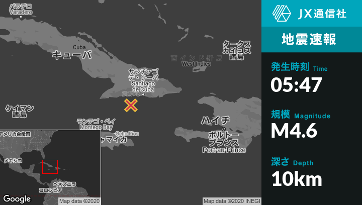 | 震源地 | キューバのEl Cobreから南西60kmの地点 |