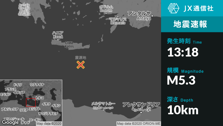 | 震源地 | ギリシャのIerapetraから南93kmの地点 |