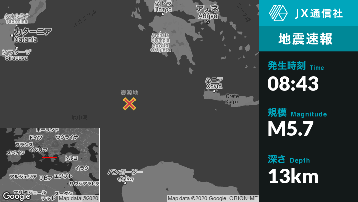| 震源地 | ギリシャのMethoniから南西226kmの地点 |