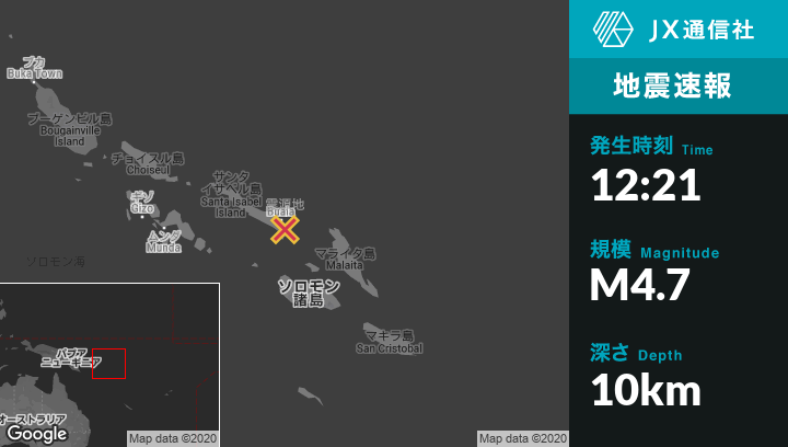 | 震源地 | ソロモン諸島のBualaから南東15kmの地点 |