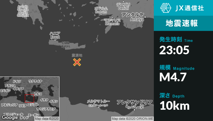 | 震源地 | ギリシャのIerapetraから南82kmの地点 |