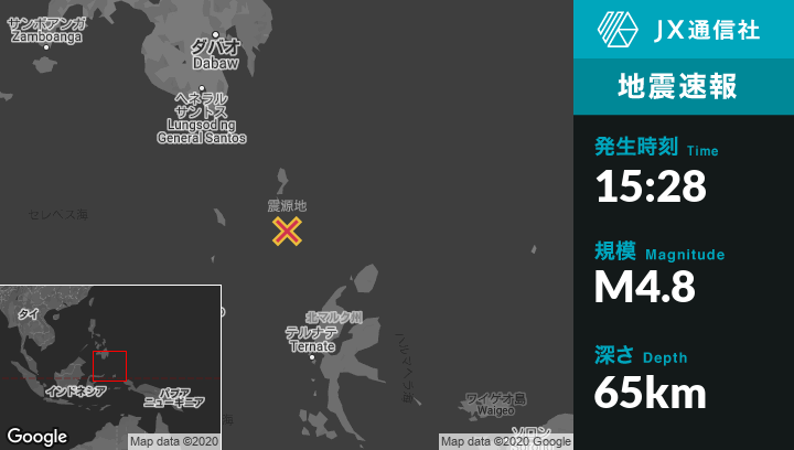| 震源地 | インドネシアのTobeloから北西225kmの地点 |