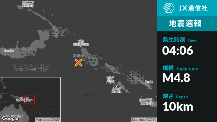 | 震源地 | パプアニューギニアのPangunaから西110kmの地点 |