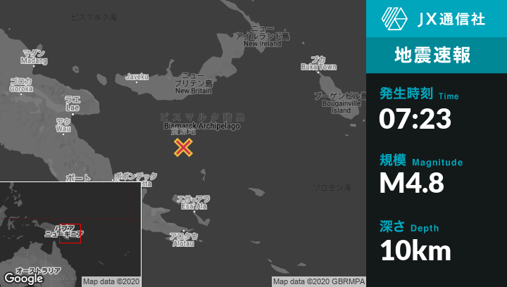 | 震源地 | パプアニューギニアのKandrianから南南東184kmの地点 |
