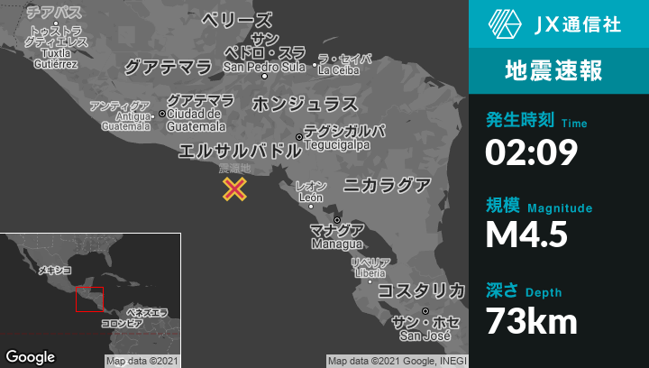 | 震源地 | エルサルバドルのPuerto El Triunfoから南南西41kmの地点 |