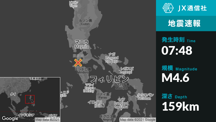 | 震源地 | フィリピンのHukayから南南東4kmの地点 |