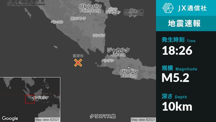 | 震源地 | インドネシアのBandar Lampungから南西186kmの地点 |