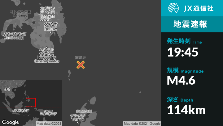 | 震源地 | フィリピンのPondaguitanから南東214kmの地点 |