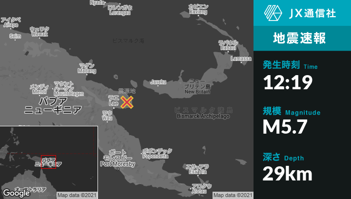 | 震源地 | パプアのFinschhafenから北西36kmの地点 |