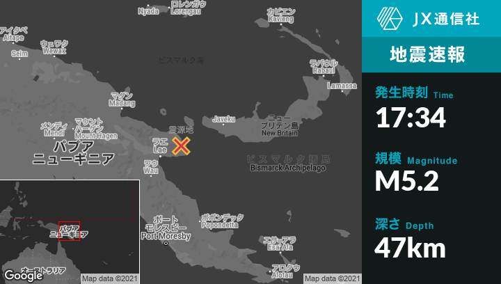 | 震源地 | パプアのFinschhafenから北北西38kmの地点 |