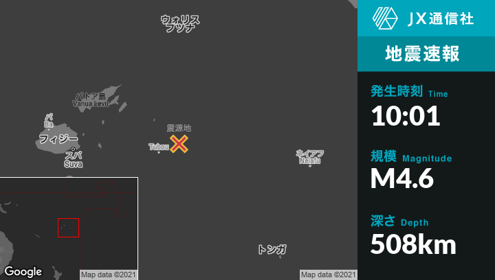 1月24日 10:01頃、フィジーのLevukaから東266kmの地点でM4.6の地震がありました。