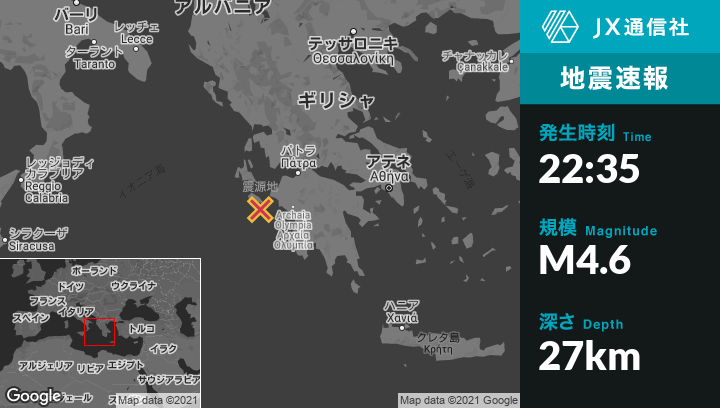 | 震源地 | ギリシャのLithakiáから東南東5kmの地点 |