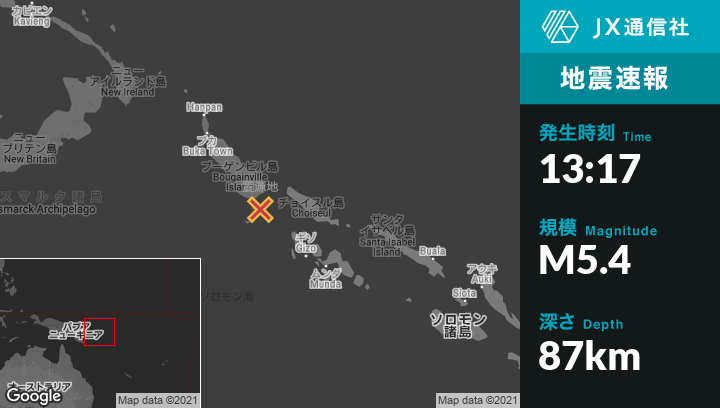 | 震源地 | パプアのPangunaから南南東82kmの地点 |