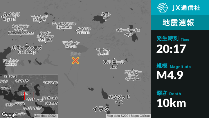 | 震源地 | シリアのAl Ḩasakahから南東47kmの地点 |