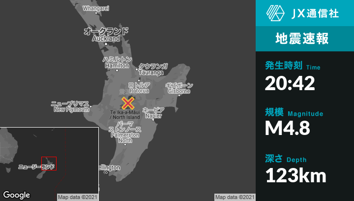 | 震源地 | ニュージーランドのTurangiから北北西18kmの地点 |