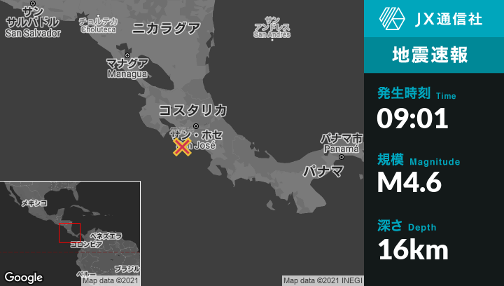 | 震源地 | コスタリカのJacóから南南東25kmの地点 |
