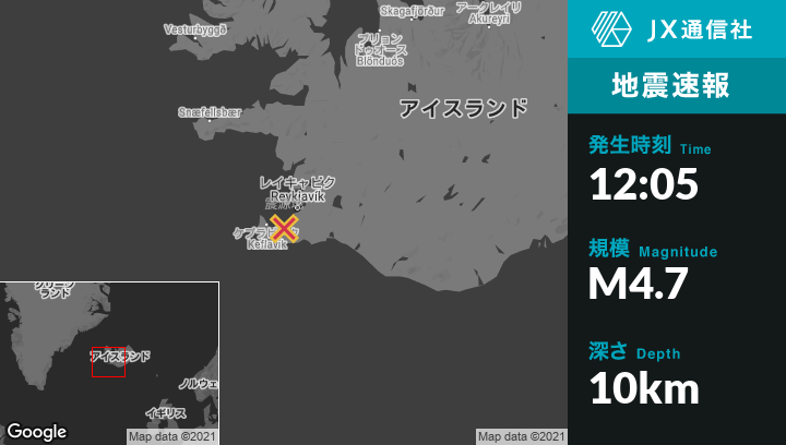 | 震源地 | アイスランドのVogarから東北東8kmの地点 |