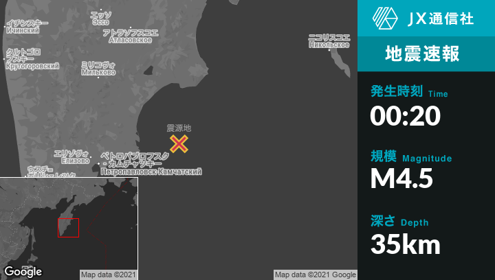 | 震源地 | ロシアのPetropavlovsk-Kamchatskyから東北東177kmの地点 |
