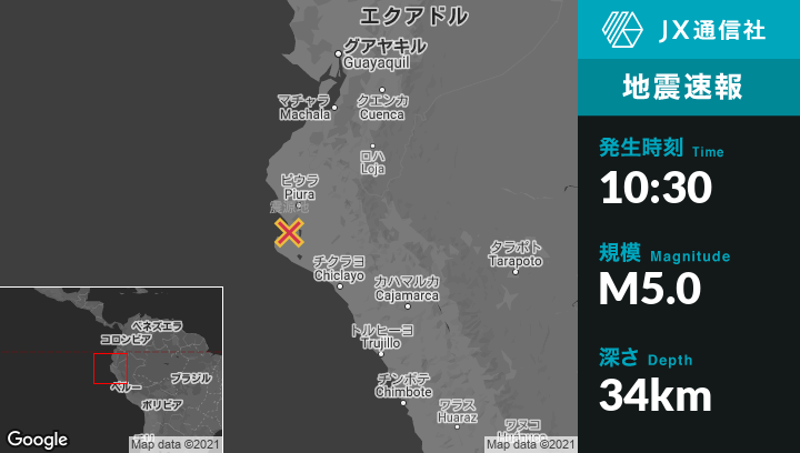 | 震源地 | ペルーのSechuraから南西5kmの地点 |