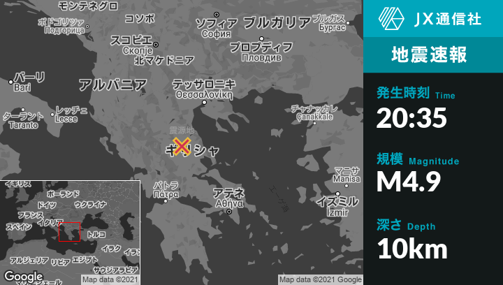 3月03日 20:35頃、ギリシャのTýrnavosから南西8kmの地点でM4.9の地震がありました。