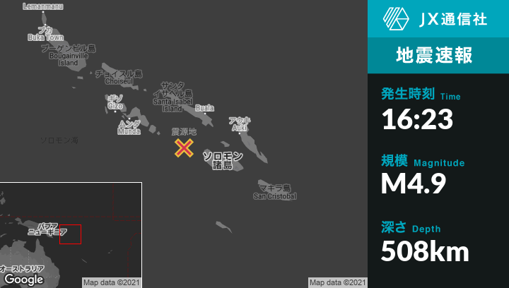 | 震源地 | ソロモン諸島のMalangoから北西105kmの地点 |