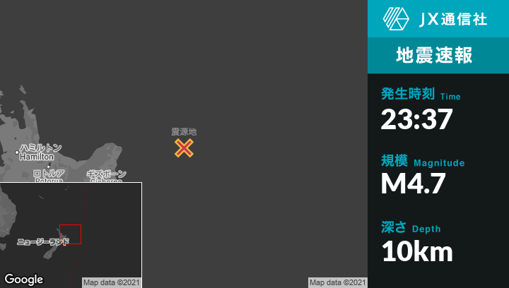 3月04日 23:37頃、ニュージーランドのGisborneから東北東243kmの地点でM4.7の地震がありました。