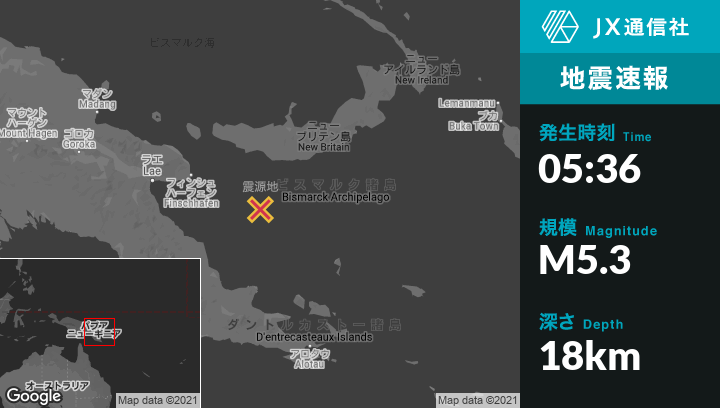 | 震源地 | パプアニューギニアのKandrianから南114kmの地点 |