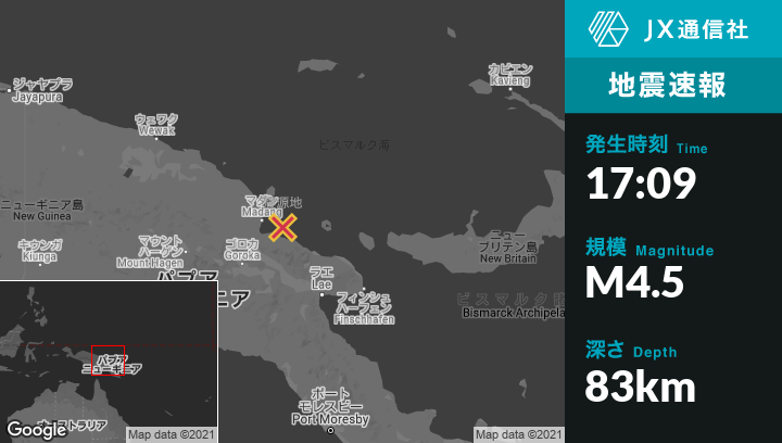 | 震源地 | パプアニューギニアのMadangから東45kmの地点 |