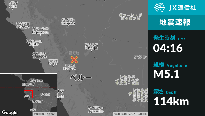 | 震源地 | ペルーのTingo Maríaから北北東42kmの地点 |