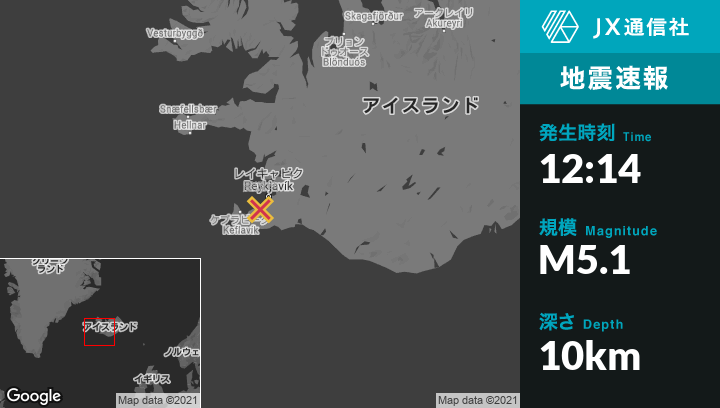 | 震源地 | アイスランドのÁlftanesから西南西6kmの地点 |