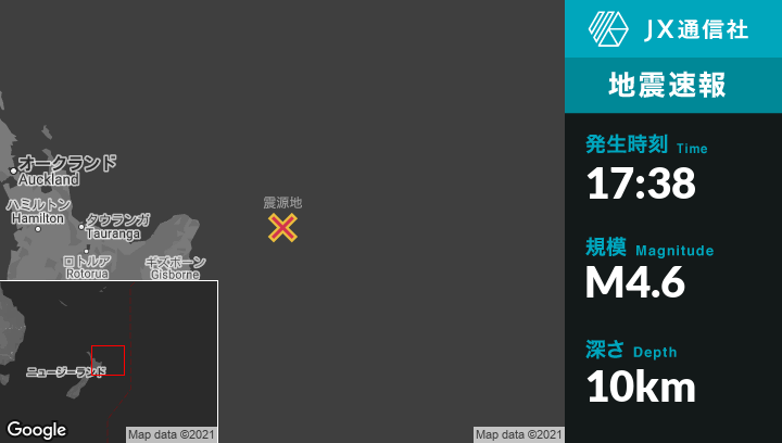 3月11日 17:38頃、ニュージーランドのGisborneから東北東222kmの地点でM4.6の地震がありました。