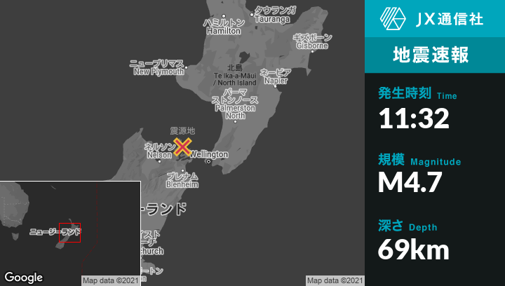 | 震源地 | ニュージーランドのPictonから北47kmの地点 |