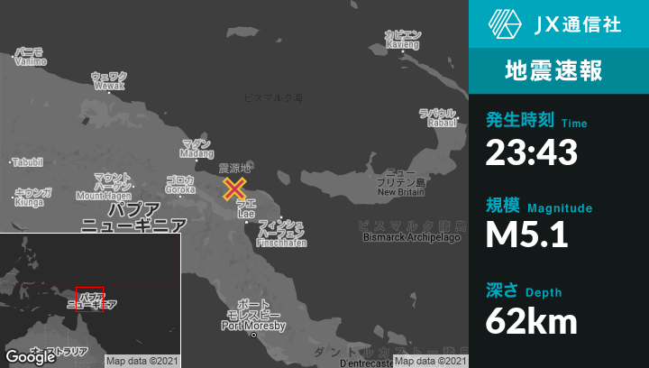 | 震源地 | パプアニューギニアのLaeから北北西106kmの地点 |