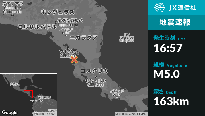 | 震源地 | ニカラグアのRivasから南東8kmの地点 |
