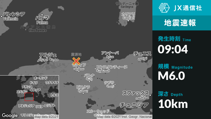 | 震源地 | アルジェリアのBejaïaから北北東20kmの地点 |