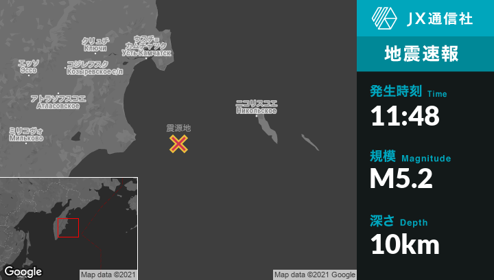 | 震源地 | ロシアのUst’-Kamchatsk Staryyから南南東176kmの地点 |