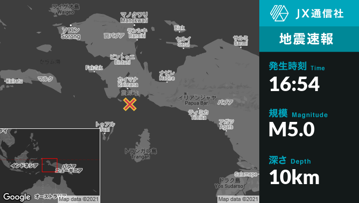 | 震源地 | インドネシアのTualから北東197kmの地点 |