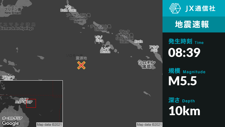 | 震源地 | ソロモン諸島のGizoから南西210kmの地点 |